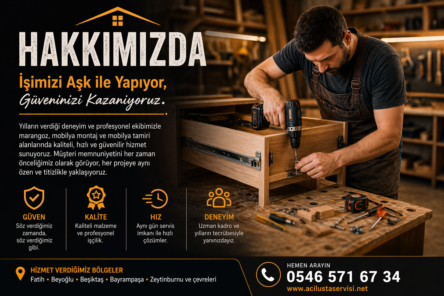 Hakkımızda – Marangoz, Mobilya İmalatı, Montaj ve Tamir Hizmetlerinde Uzman KadroAcil Usta Servisi